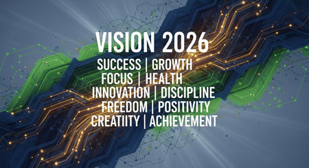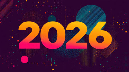 Abstract design featuring the year 2026 in bold colors and geometric shapes. Perfect for digital art projects, marketing campaigns, or creative presentations.