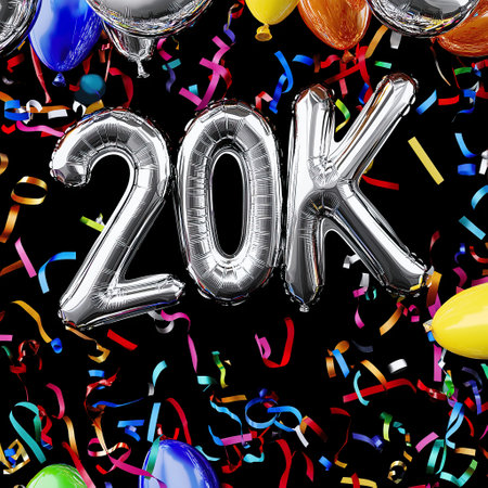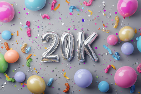 A joyous celebration with silver foil 20K, cheerful balloons, colorful streamers, and sparkling confetti creating a festive vibe!