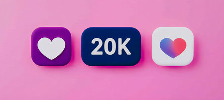 Social Media Notification With 20,000 Followers, Likes And Comments on Pink Background