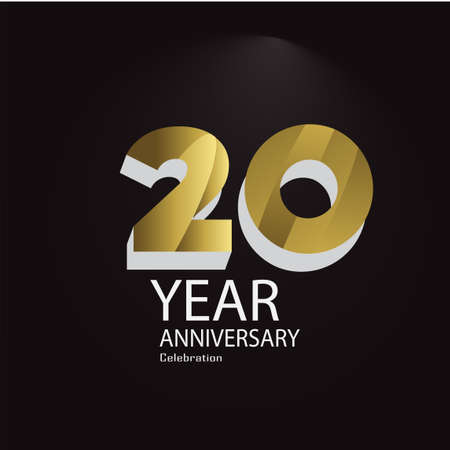 20 Years Anniversary Celebration Gold Black Background Color Vector Template Design Illustration