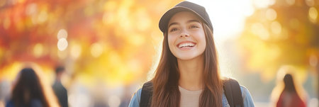 Smiling Young Woman on a Vibrant College Campus