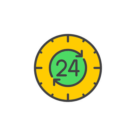 24 hours , around the clock line icon, filled outline vector sign, linear colorful pictogram isolated on white. Symbol, logo illustration