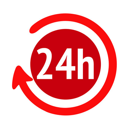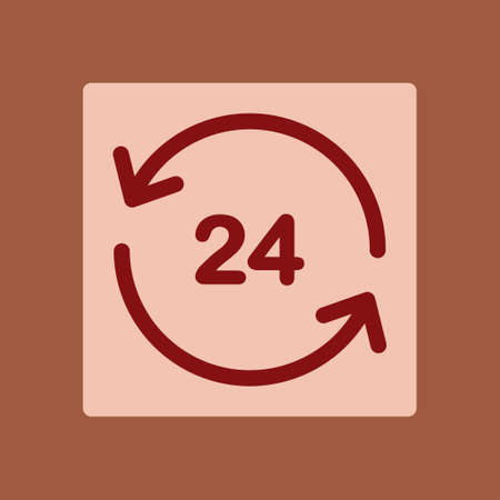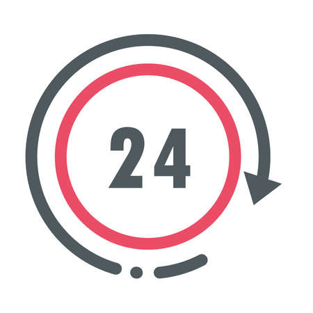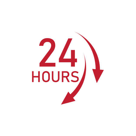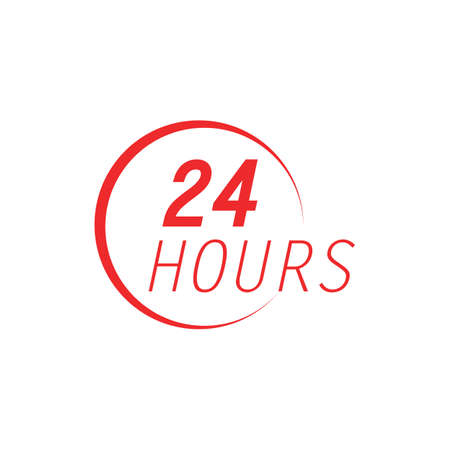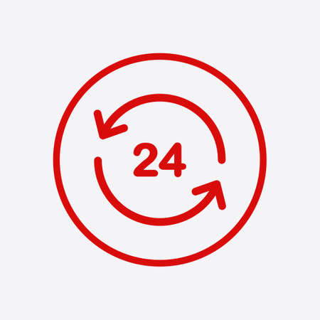 24 hours service sign. Red icon on white background. Vector illustration.