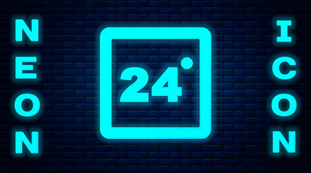 Glowing neon Thermostat icon isolated on brick wall background. Temperature control. Vector.