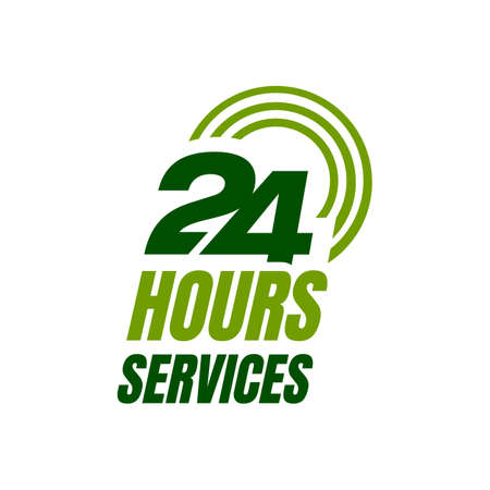 24 hour service logo vector icon. Standby 24/7 sign day/night services button symbol
