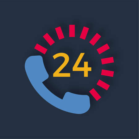 24 hours service icon. 24 hours support symbol. Vector illustration.