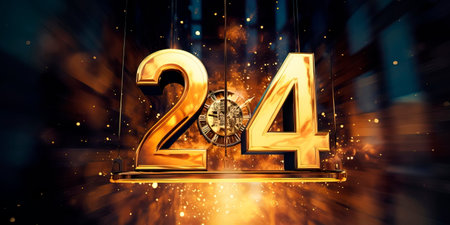 Numeral of the year 24 in gold color on a light white background. With Generative AI technology.