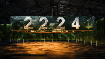 Futuristic interior with a sign with the numbers 2022. AI Generative