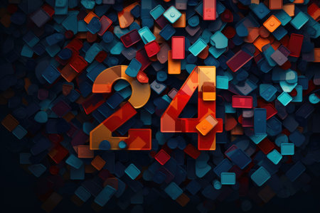 Wooden cubes with numbers 24 and 7 on bokeh background