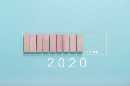 Loading new year 2020 concept , Showing loading bar with wood cube on bluebackground