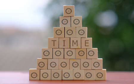 A quote for reminding people how important time is. A self motivation quote regarding time. Selective focus on the clock.