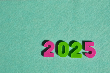 New year 2025 on green paper background, Happy new year 2025 concept