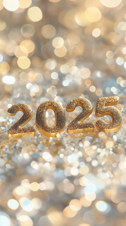 Golden 2025 numbers on chic silver minimalistic backdrop, stylish and elegant presentation