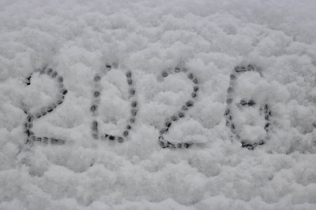 On the white snow, the numbers 2026, the concept of Christmas and New Year.