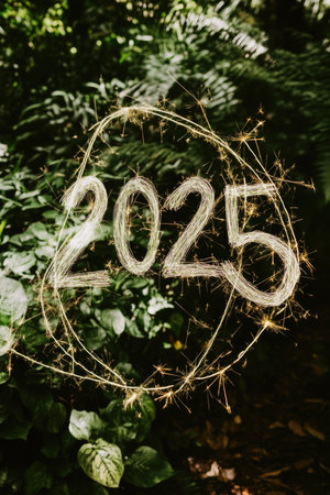 Sparkling 2025: illuminated nature-themed new year celebration.