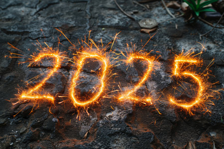 Sparkling 2025 New Years Eve Celebration With Fireworks From Sparklers On Dark Background
