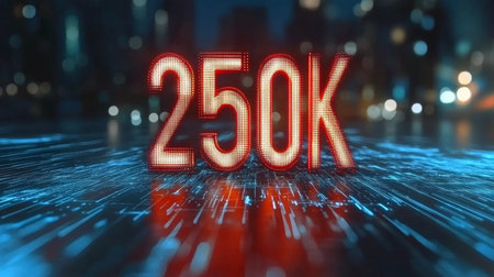 Futuristic Digital Display Celebrating Financial Success with Vibrant Cityscape and 3D Icons