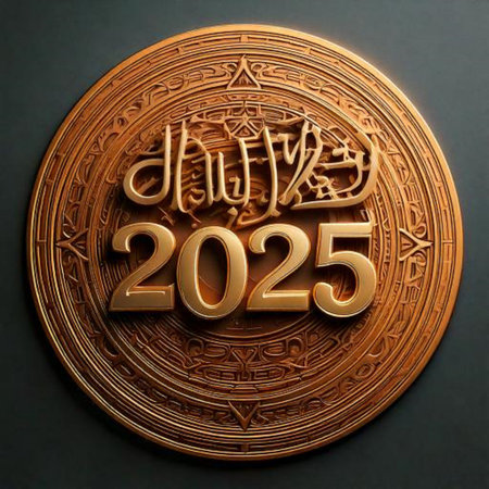 Golden 2025 numbers sparkling on a dark blue textured surface represent the upcoming new year and future possibilities