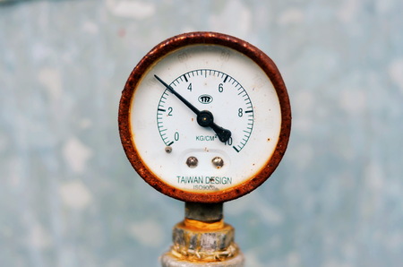 The pressure gauge shows pressure. Instrument scale with numbers, arrow indicates operating parameters.