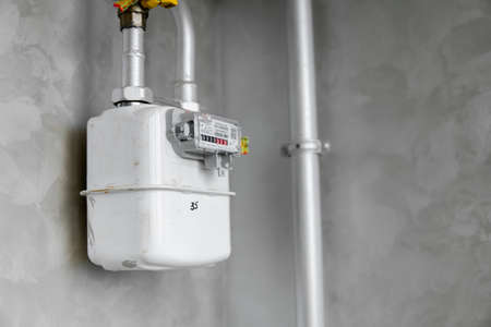 LUTSK, UKRAINE - December 10, 2020: New gas meter in the new private house, counter for distribution domestic gas.