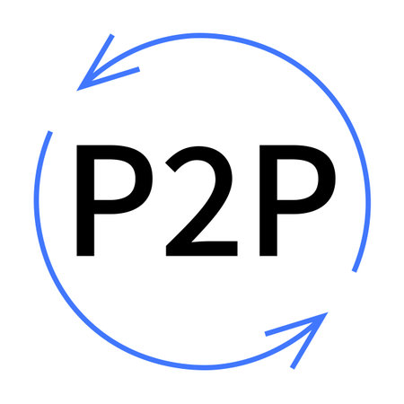 The image features the text P2P surrounded by two blue arrows forming a circle, symbolizing continuous exchange. Ideal for networking, technology, online transactions, peer-to-peer networks, communi