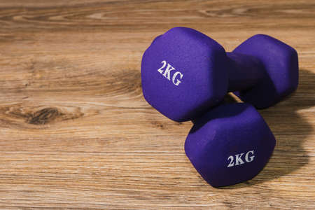 2 kg dumbbells isolated on dark background - home fitness and workout.