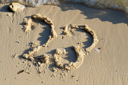 A sad face drawn in the sand is washed away by waves, symbolizing fleeting efforts and failure.