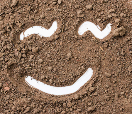 A close-up captures a cheerful yellow ball with a smiling face placed on a surface of brown earth. The vibrant ball is contrasted against a blurred green backdrop, creating depth. The composition focuses on a central subject, potentially suitable for various visual communications and editorial applications.