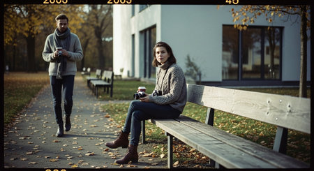 One person holding camera, photographing outdoors, focus on foreground generated by artificial intelligence