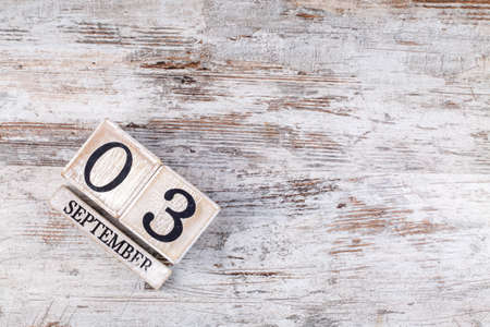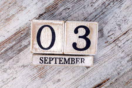 Cube shape with the date of 3 september on wooden background