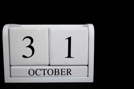 October 31 calendar white, wooden on a black background