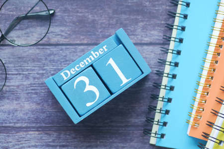Wood brick block show date and month calendar of 31th December meaning The end of years. Celebration and holiday long weekend season concept.