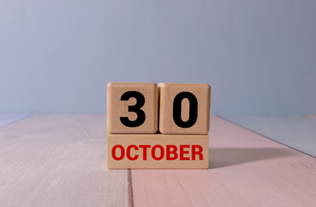 Wooden Calendar Showing the Date of October 30th. Day 30 of October Month