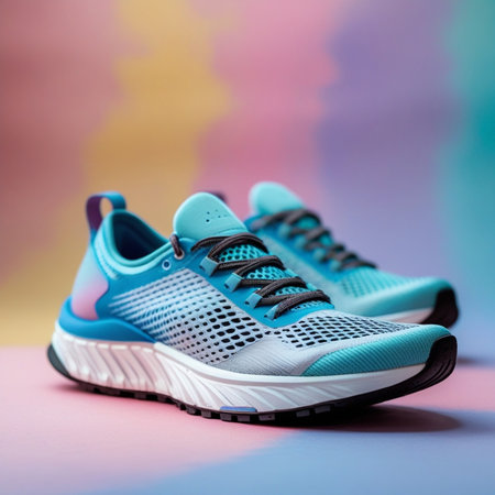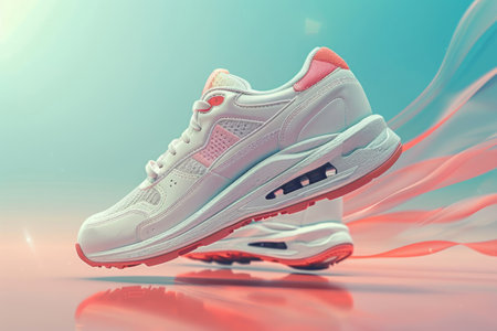 Sports sneaker on a blue-pink pastel background.