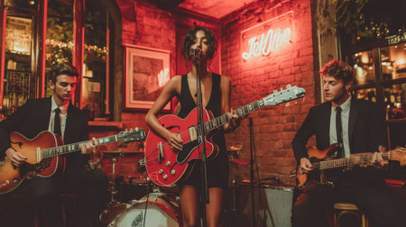 A jazz band is playing in a bar