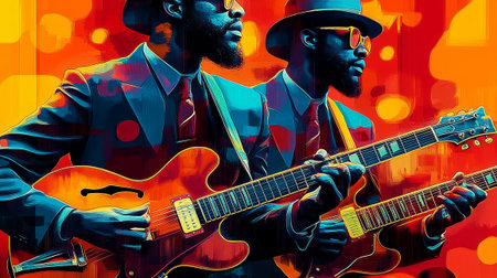 Capture the vibrant energy of Black History Month with this stunning collection of images African American musicians ignite the stage in a live performance celebrating their rich musical heritage Iconic moments and powerful expressions are frozen in time, showcasing the enduring legacy of Black music AI Generative