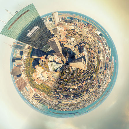 Planet Boston - Miniature planet of Boston skyline at sunset.