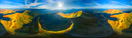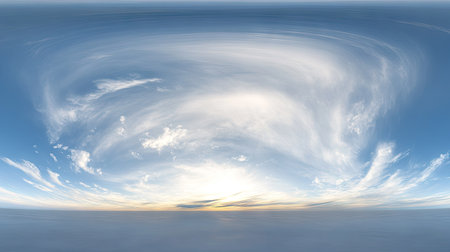 sunset in a deep blue sky with clouds Continuous panorama in spherical equirectangular format with full zenith for usage in games aerial drone 360 degree panoramas and composites