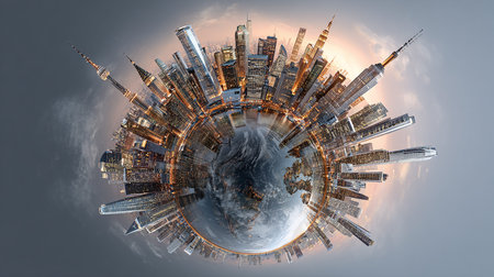 Planet Earth in the shape of a city. Elements of this image are furnished by NASA