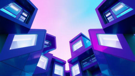 Colorful Neo-Fauvist Style Buildings with Clear Sky Background, architecture concept