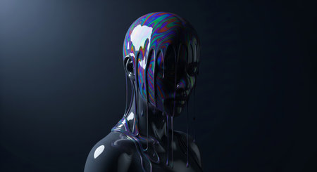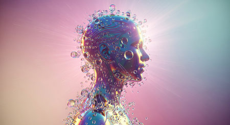 Radiant AI Humanoid Form Covered in Digital Bubbles and Circuits