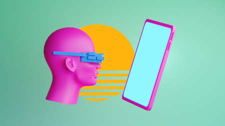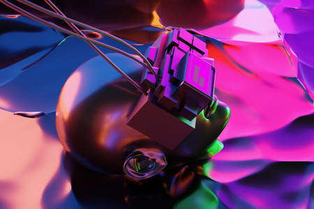 bionic automatic face, futuristic technology network server online, background illustration 3d rendering, ai robot cyberpunk style