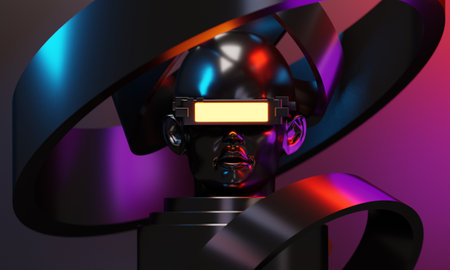 metaverse vr simulation gaming cyberpunk style, digital robot, 3d illustration rendering, virtual reality