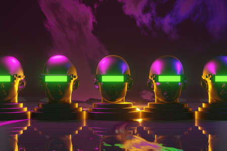 ai robot bionic automatic face, technology network server online, background illustration 3d rendering, cyberpunk futuristic style