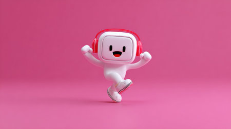Joyful Toon Mascot Dances Happily in a Minimal Setting With Space for Text Enjoy the Lively Moment of Celebration