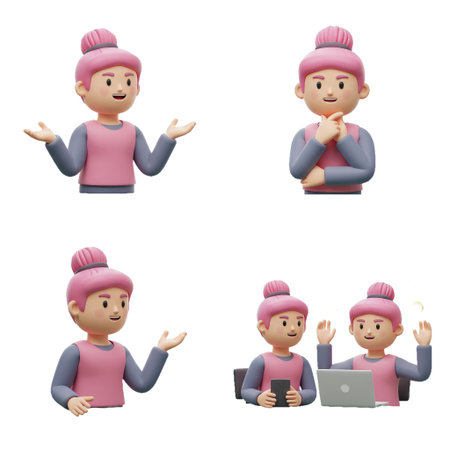 Character in a studio with a minimal background shows a thumbs up gesture, conveying approval and confidence while wearing a casual outfit.