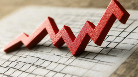 A bold red zigzag trend line rests on a smooth marble surface highlighting an upward movement in analysis or design concepts.