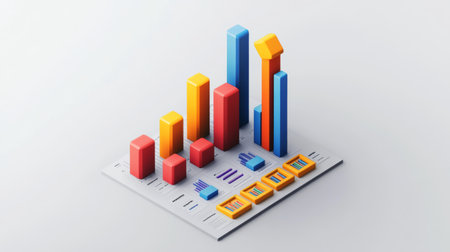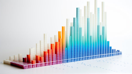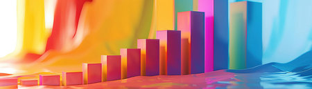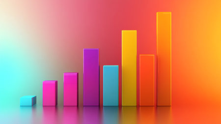 A vibrant 3D bar graph featuring colorful bars in various heights, creating a dynamic visual representation. Ideal for data presentations and creative designs.