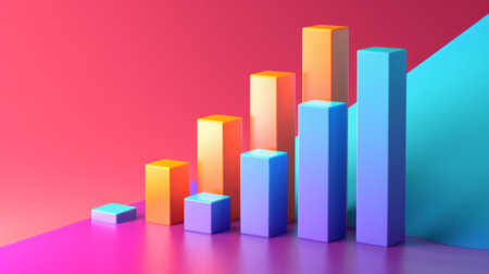 A vibrant 3D bar chart illustration on a dark background, perfect for showcasing data analysis, metrics, and business insights. Ideal for presentations.