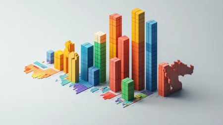 A visually striking 3D bar graph made of colorful blocks, representing data analysis and statistics. Ideal for creative business and marketing visuals.